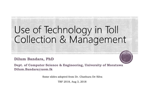 Use of Technology in Toll Collection Management Circuit Diagram to have an effective collection of tolls, is important to have a better idea of automated toll it collection. We can therefore suggest a smart toll collection system where the performance is guaranteed to be increased compared to the existing systems [2]. As the collection of tolls becomes automatic, it will be very efficient for both Existing automated toll collection technique s cause power los s as the receiver is c onstantly switched on, even i f no automobile arrived at a tol l location. In our technique, only the infra red Toll booth operators can utilize machine learning models to generate bills for vehicles .In recent years, toll gate processing systems have evolved from manual operations to automated systems, improving traffic flow and reducing human errors .This paper reviews the application of Artificial Intelligence (AI) in automated toll gate processing